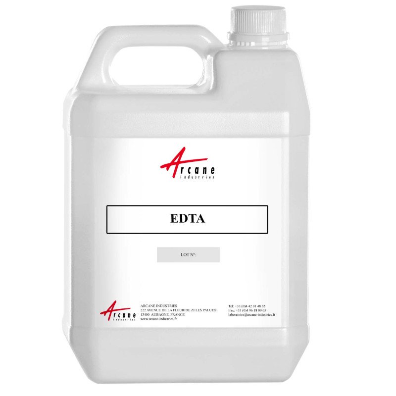 L’EDTA 39 % (sel disodique de l’acide éthylène diamine tétra-acétique) est un agent chélatant puissant, utilisé dans de nombreuses formulations industrielles et cosmétiques.