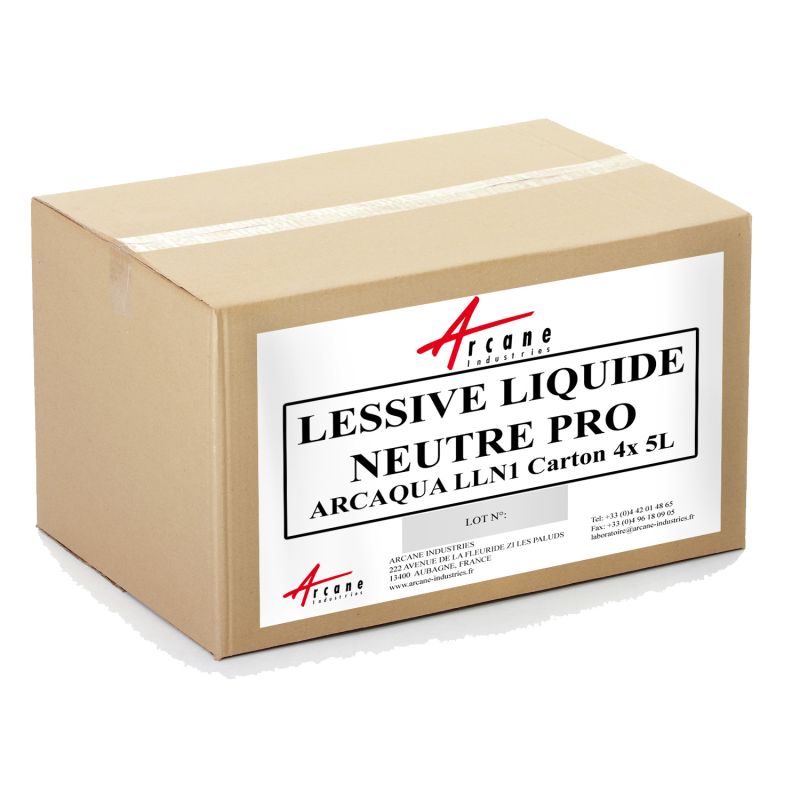 ARCAQUA LLN1 est une lessive liquide neutre professionnelle, sans parfum, destinée au lavage en machine de tous types de textiles en blanchisseries, pressings, hôtellerie et laveries. Sa formule concentrée, efficace dès 30 °C, élimine les taches et salissures tenaces tout en préservant les fibres et les couleurs. Elle offre un rinçage facile et est formulée sans phosphate.
